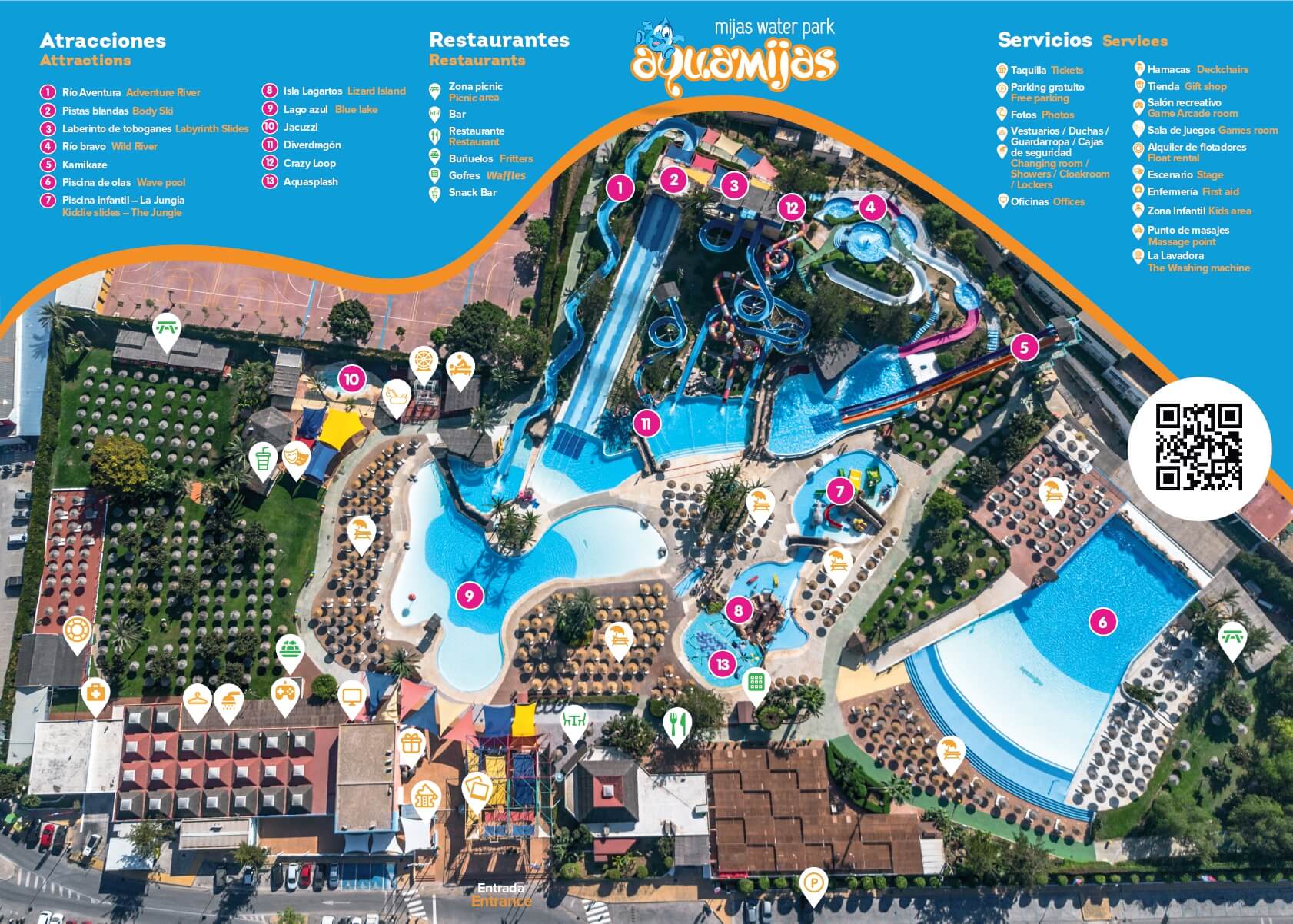 AquaMijas est un parc aquatique situé dans la localité de Mijas (Malaga), à côté de Fuengirola. Avec des attractions pour toute la famille et un grand catalogue de services, c’est un des centres de divertissement de référence dans tout la Costa del Sol, plus de 30 ans rendant heureux enfants et adultes.