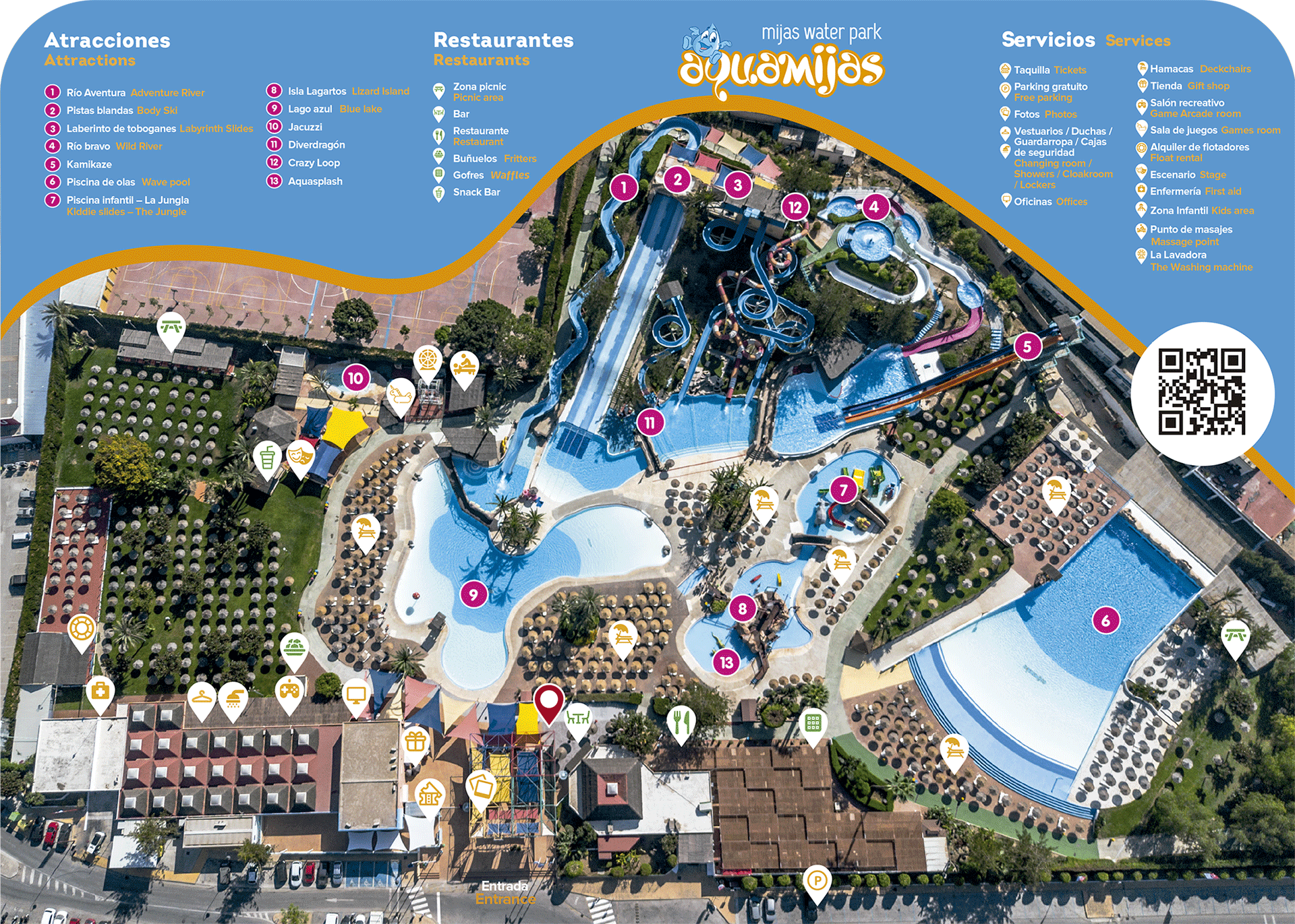AquaMijas est un parc aquatique situé dans la localité de Mijas (Malaga), à côté de Fuengirola. Avec des attractions pour toute la famille et un grand catalogue de services, c’est un des centres de divertissement de référence dans tout la Costa del Sol, plus de 30 ans rendant heureux enfants et adultes.